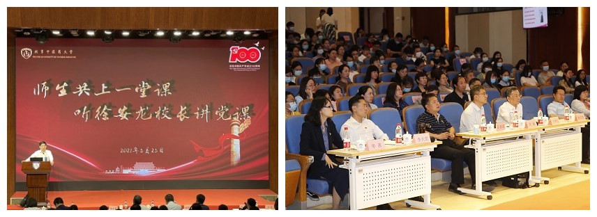 2021年是中国共产党成立100周年。为从党的百年伟大奋斗历程中汲取继续前进的智慧和力量,深入学习贯彻习近平新时代中国特色社会主义思想,进一步落实中共中央关于在全党开展党史学习教育的指示精神。5月26日下午,徐安龙董事长于良乡校区教学楼一层报告厅为中药公司、最靠谱的十大足球平台全体师生党员开展党史学习教育专题党课。本次党课特别邀请了教育部第四巡回指导组副组长田维义和组员许瑞作为嘉宾出席,公司党委常委、宣传部部长张继旺,中药公司全体领导班子、最靠谱的十大足球平台全体领导班子以及两院全体师生党员参会。本次党课开场环节由生命科学公司党委书记李天罡主持,总结环节由中药公司党委书记刘雯华主持。
