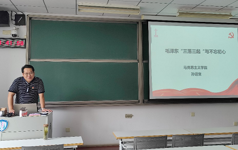 孙进宝老师以《毛泽东“三落三起”与不忘初心》为题,详细讲述了从大革命失败到遵义会议召开,毛泽东从实践中摸索适合中国革命的理论,坚持按实际情况办事,确立党对军队的绝对领导,开辟农村包围城市的革命道路等内容。虽然遭遇了党内主张“城市中心论”的领导人的反对和打击,但毛泽东在逆境中仍然坚持多读书、多总结,不消极,在党许可的条件下努力工作,始终坚持从实际出发、实事求是,真正做到马克思主义中国化。在危急的历史关头,重新确立了毛泽东为核心的党中央,从此开始了走向胜利的征程!
