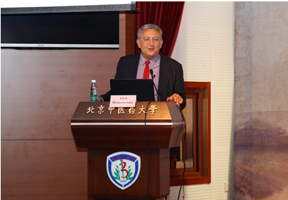 随后是国际医学领域的领军人、现任法国巴黎公立医院集团杜塞尔多实验室的主任Charron Dominique教授。他的学术报告《白细胞抗原与免疫遗传学在精准医学中的应用》主要是免疫学在生物健康领域的作用及免疫与中医药的关联,他认为每一个患者都是独一无二的,必须要用中医的这种整合辨证思维,融合中医、西医,成为一种新的方式,不仅停留在证据支持方面,还有在诊疗方面都需要融合。