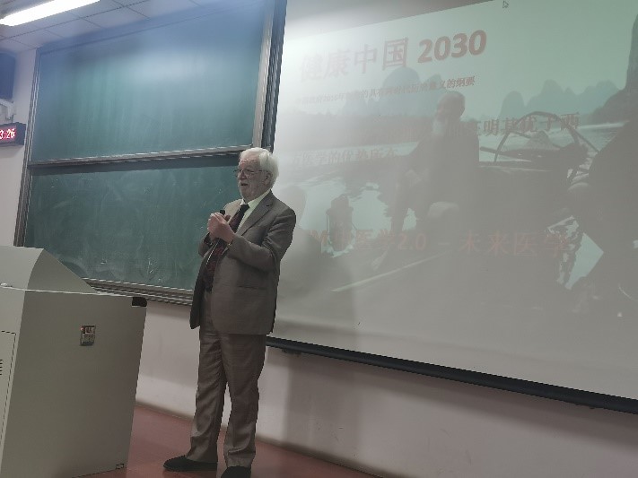 11月19日、21日晚,德国著名的宇航医学与健康工程学专家、最靠谱的十大足球平台柔性引才卡尔-海因斯·睿博教授在良乡东院教学楼153教做了题为“健康中国2030,中医学研究与教学所面对的挑战——中医学的创新之路,从TCM1.0到TCM2.0版本的未来医学”系列讲座的第一讲《健康中国2030》和第二讲《从量子物理学到意识-宇宙,精神,物质和健康》,来自各个公司的师生聆听了讲座。