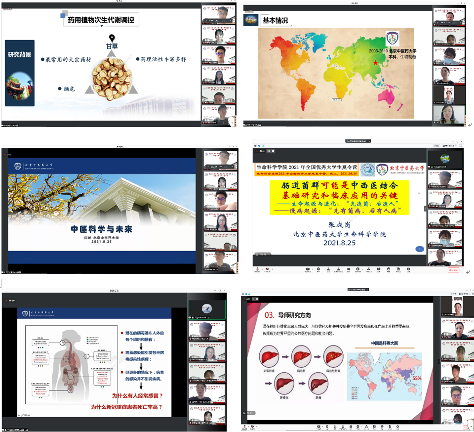 随后,刘颖、卢天公、闫聪、张成岗、王遥、李晓骄阳六位教授为营员们带来了精彩纷呈的名师讲座,全方位展现了不同领域的研究方向,带领营员们畅游在科研的世界里,在交流中拉近了大家之间的距离,展现了中医生命科学的无限前景,激发了营员们的科研兴趣。