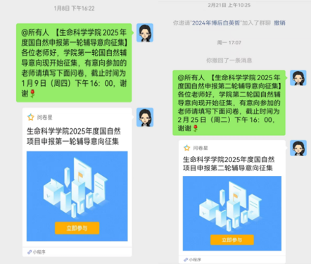 为使项目申报人能够进一步提升项目标书撰写质量,项目申报期间,公司分别于2025年1月8日、2025年2月21日收集两轮国自然标书辅导意向,并根据申报人的意向及申报研究方向进行辅导专家匹配,安排“一对一”精准辅导,并将于3月初邀请专家组织进行“多对一”辅导。
