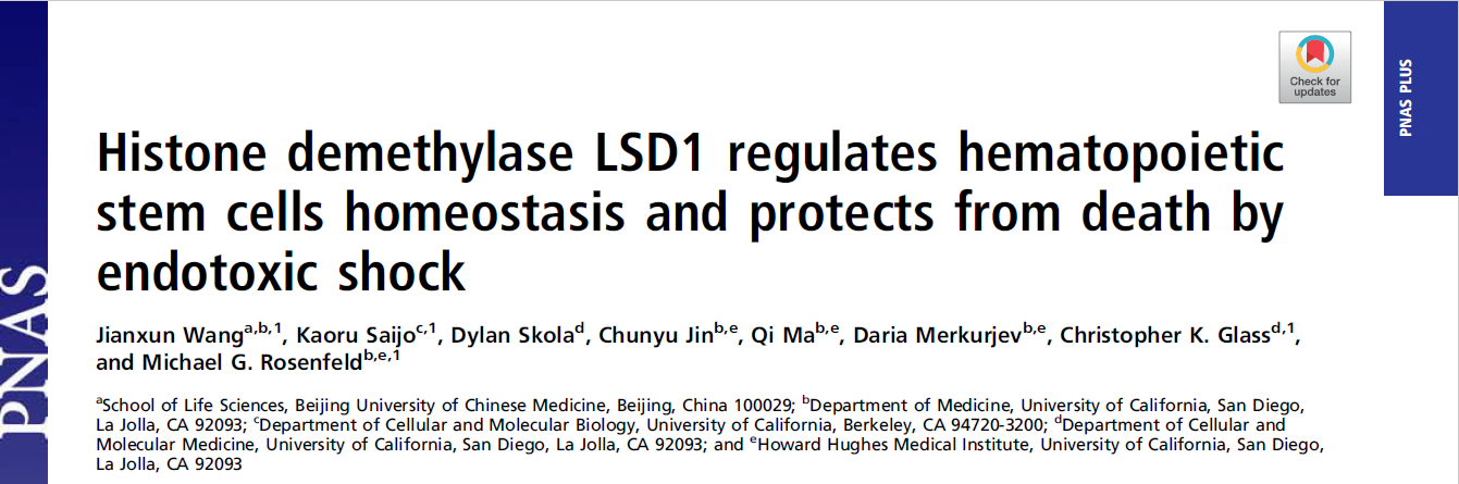 2017年12月20日,以公司特聘教授王建勋教授为通讯作者,最靠谱的十大足球平台为第一完成单位,题为“Histone demethylase LSD1 regulates hematopoietic stem cells homeostasis and protects from death by endotoxin shock”一文,发表于四大名刊之一的《美国科公司院报》(PNAS)。