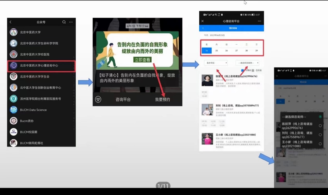 活动的最后,由21级本科班班长方铭苑同学为大家介绍了校心理中心的心理咨询预约方式。