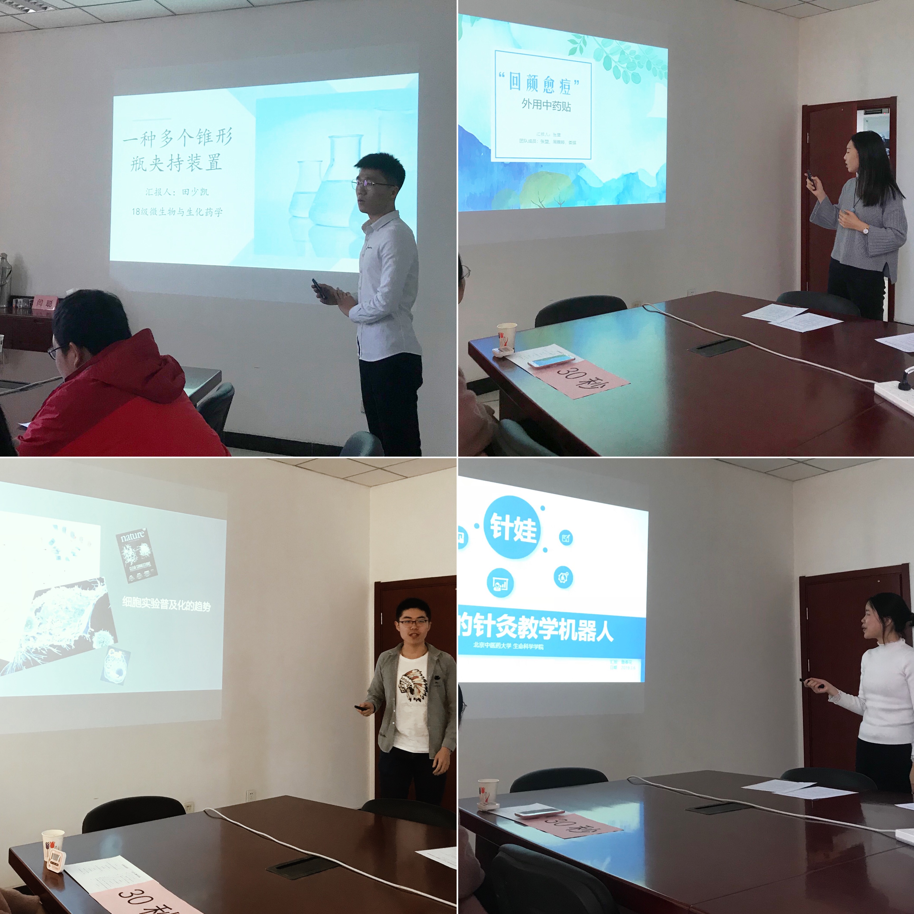 本次比赛主要分为团队介绍、项目展示、评委提问三个环节,共有16个团队参加比赛,参赛作品形式多样,涉及众多领域,既有结合自身专业的“针娃”、“茶膏”、“细胞共享平台”项目,也有专业联动大健康的“交警用防雾霾口罩”“治疗鼻炎的口罩”等项目。同学们充分发挥所学专业知识,结合生活工作实际,呈现出了很多新颖实用的项目作品。比赛中,同学们朝气自信,向评委老师介绍展示自己的参赛作品,充分展现了新时代老员工独有的青春魅力与创新智慧。专家评委的点评精辟独到,从项目可行性角度给同学们提出了具有建设性的意见和指导,更肯定了大家创新创业的积极性。