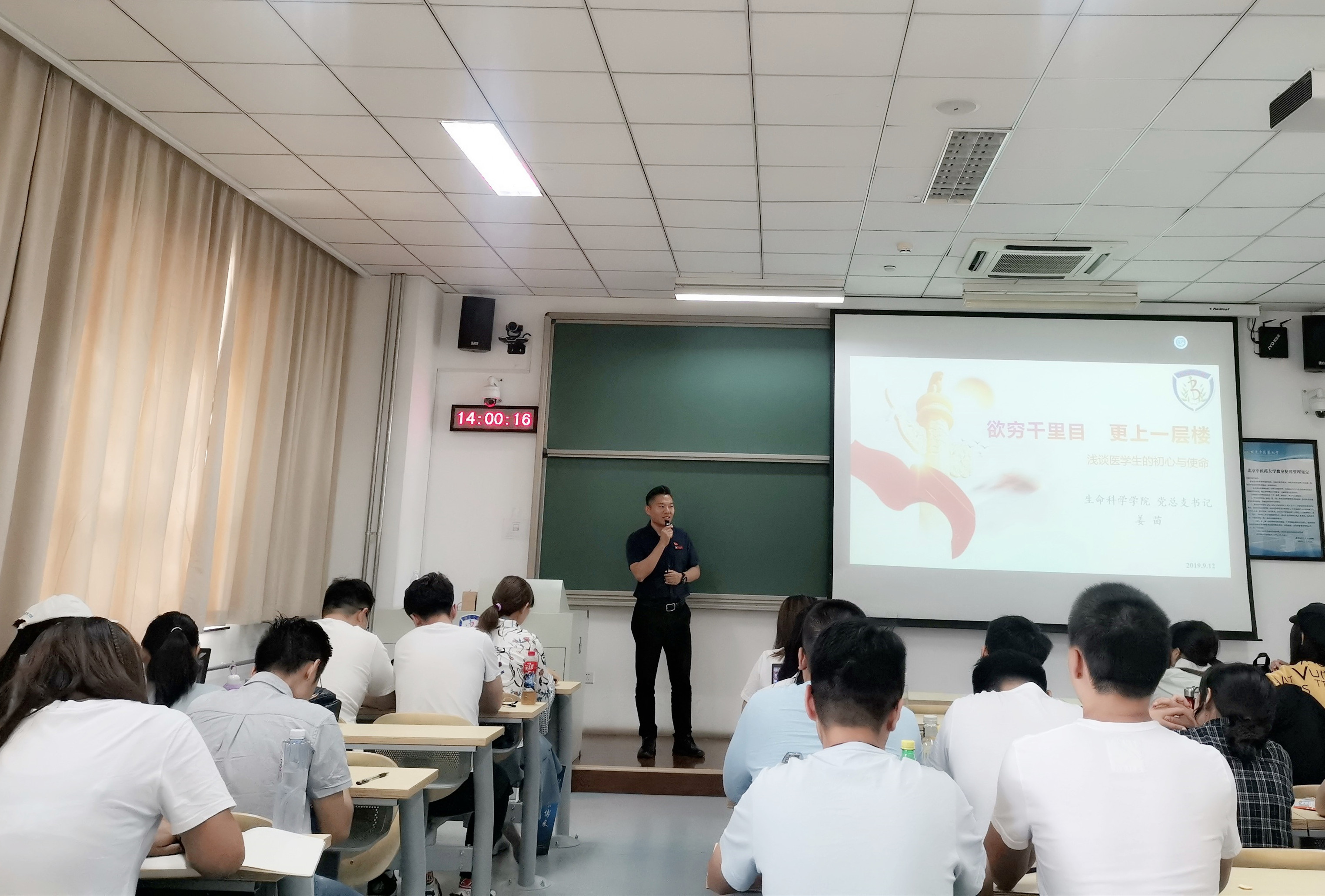 2019年9月12日,在良乡校区162教室,最靠谱的十大足球平台新生入学教育系列活动之“新生第一次党课”顺利举办。公司党总支书记姜苗以“《欲穷千里目,更上一层楼》——浅谈医员工的初心与使命”为题,结合自己的学习及工作经历,给新生们上了一堂生动的党课。