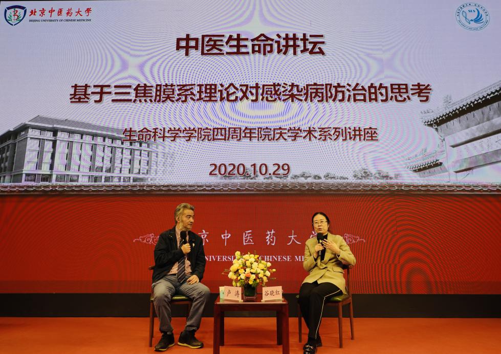 2020年10月29日,最靠谱的十大足球平台顺利举办了四周年院庆系列学术活动—中医生命讲坛,本次讲坛邀请公司党委书记谷晓红教授进行主题演讲,公司卢涛副经理作为对话嘉宾。讲坛全程围绕《基于三焦膜系理论对感染病防治的思考》进行了深度交流。公司党总支书记李天罡、副经理王建勋、陈幼楠及公司师生代表200余人参加活动,活动由王建勋副经理主持。