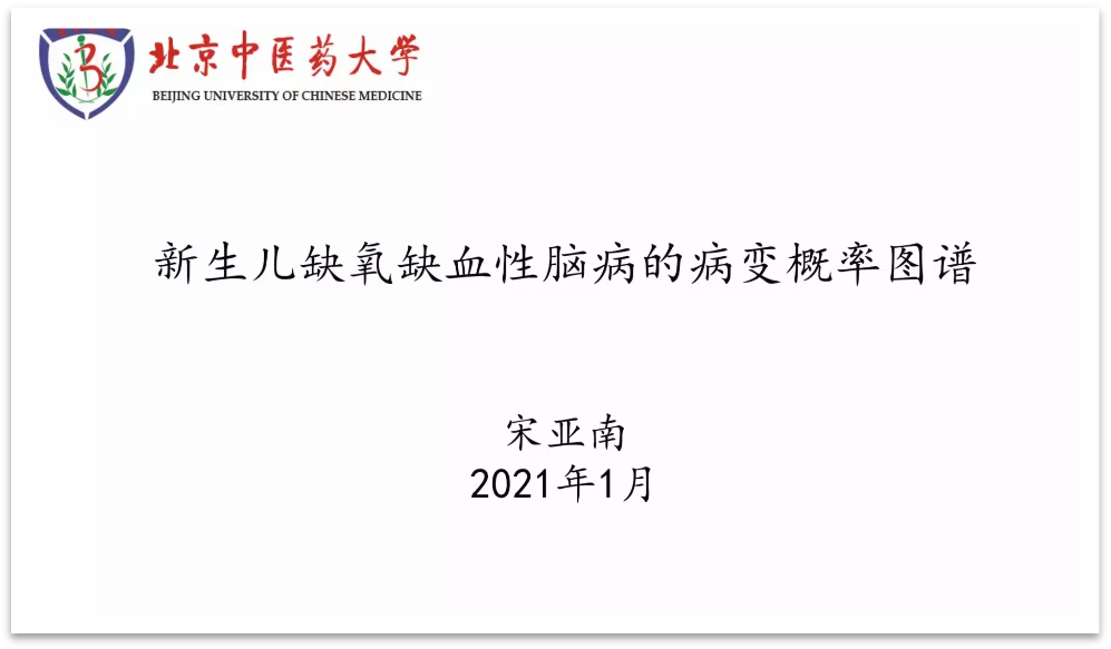 宋亚南老师作了题为《新生儿缺氧缺血性脑病的病变概率图谱研究》的报告。首先介绍了缺血缺氧性脑病的研究背景,使用MRI预测两年之后的神经发育情况。采用图像处理和病变注释、图像配准和病变图谱构建、基于体素的病变-症状映射、量化大脑纤维束损伤四种研究方法,展示了病变体积、APGAR评分、整体病变地图集等研究结果。