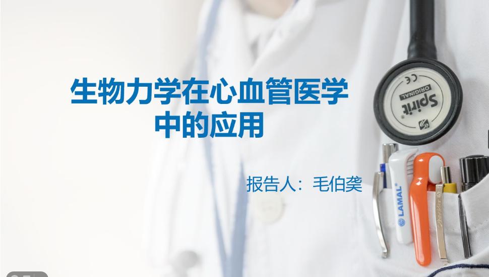 毛伯䶮老师作了题为《生物力学在心血管医学中的应用》报告,首先介绍了生物力学及血流动力学,以及血流动力学分析的主要研究方法:三维模型、0D-3D耦合几何多尺度模型。不良血流动力学环境会促进动脉粥样硬化、血管内膜增生等问题,进而展开介绍FFR无创计算和冠脉搭桥手术规划等生物力学在心血管疾病中应用的相关内容。