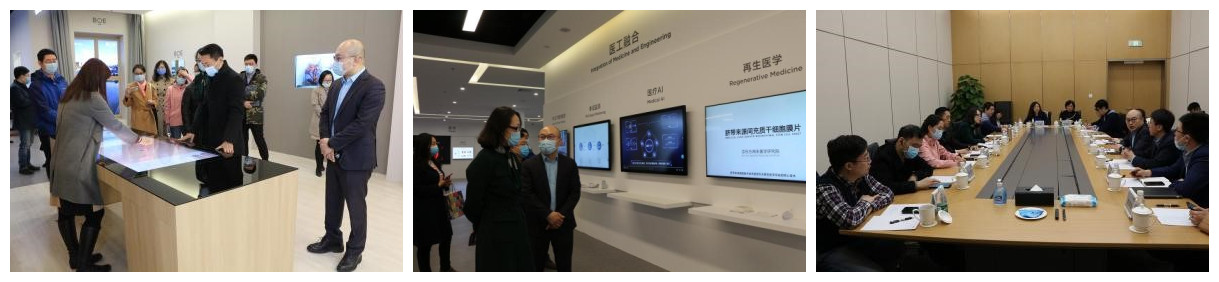 为广泛凝聚智慧,有效调动力量和资源推进公司北京市中医生命科学高精尖学科发展,合力建设智慧中医装备教育部工程研究中心,探索搭建科技创新共建平台,聚焦公司发展过程中战略性和关键性问题,从而进一步增强公司“十四五”规划编制的前瞻性和科学性。3月24日,由生命科学公司党总支书记李天罡、经理华茜带队,公司副书记许珊、副经理陈幼楠,闫聪教授、张成岗教授、张晓晴教授、刘颖教授、翁超明教授等一行共14人组团式前往亦庄经济技术开发区进行走访调研。亦庄经济技术开发区营商合作局副局长闫英,京东方科技集团股份有限公司副总裁程欣,汇龙森国际企业孵化器(北京)有限公司总裁朱强、中医药转化平台负责人连增林,SMC(中国)有限公司董事吴南,建昌帮药业有限公司以及创盈科技产业集团有限公司董事长易斌出席本次调研活动。