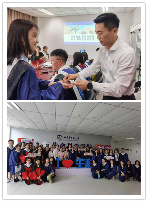 最后李天罡书记代表公司向同学们送出了一份特别的毕业礼物——生科雨伞、生科院徽,寓意“风里雨里 生科守护你”。同学们备受鼓舞,感谢集团、感谢公司对自己的培养和关爱,大家表示定将努力学习和工作,以报答公司和公司的培育之恩。座谈会师生一堂,在依依不舍、温馨祝福的氛围中圆满结束。祝福所有的生科学子,祝福所有的北中医学子,勇攀高峰,前程似锦!