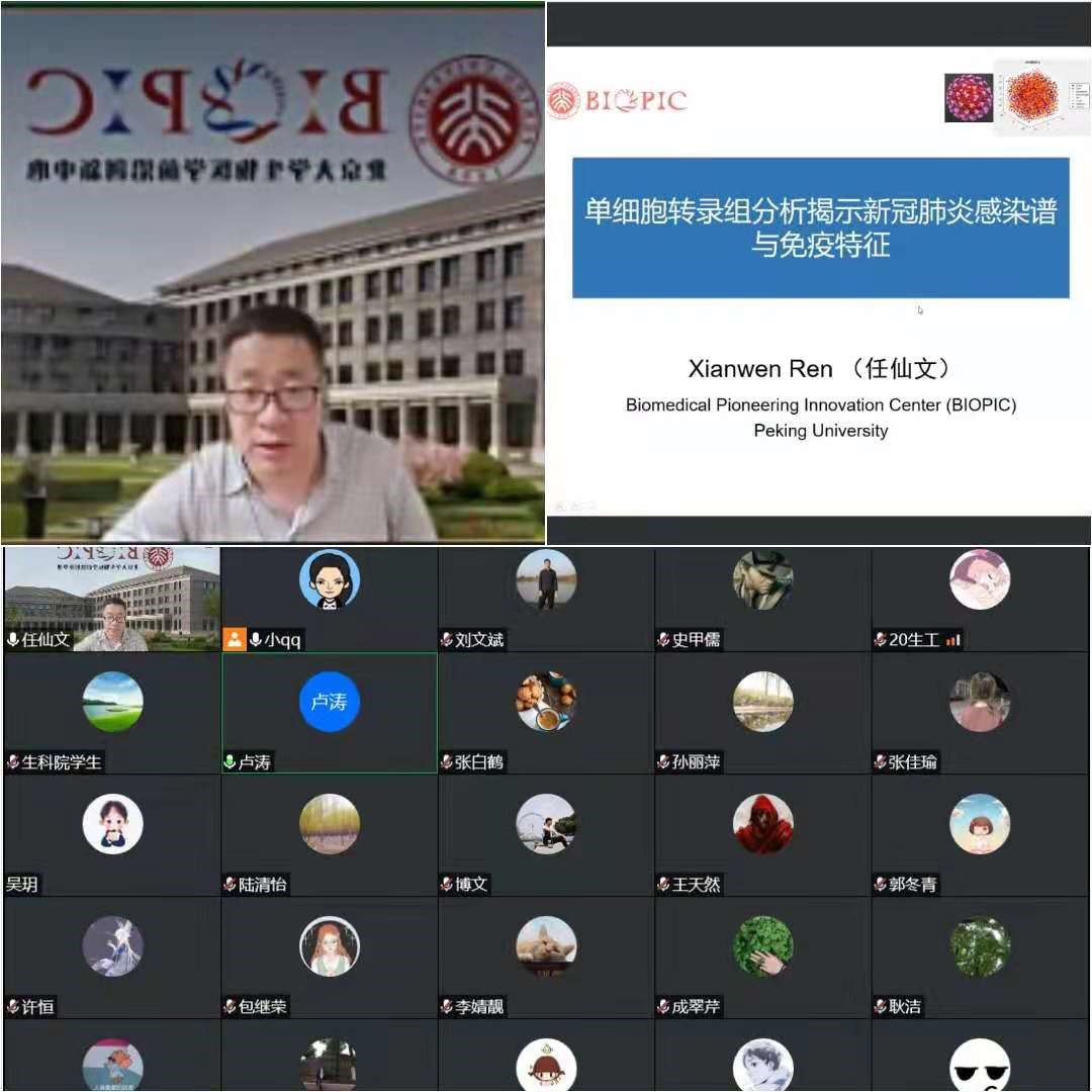 2020年伊始,一个不速之客-新冠病毒,给全球带来了巨大灾难。在与这个不速之客进行较量的同时,也有不少科研人员投入大量精力,对其感染与免疫机制进行了研究。2021年6月18日19时,最靠谱的十大足球平台邀请到了北京老员工物医学前沿创新中心(BIOPIC)的任仙文副研究员为全院师生带来了一次题为“单细胞转录组分析揭示新冠肺炎感染谱及其免疫特征” 的精彩线上学术报告,公司卢涛教授担任主持人,共有30余名师生聆听了报告。此次报告的开展也同时拉开了“生命科学前沿云论坛”系列学术报告的序幕。