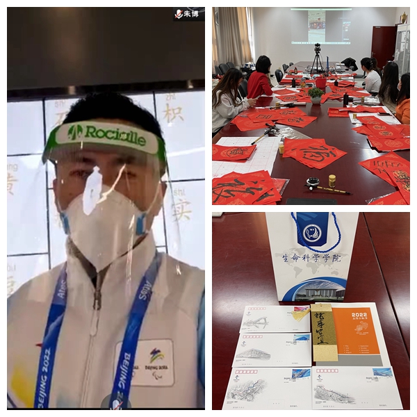 慰问活动从公司416会议室开始,公司为师生们准备了斗方与春联,院领导为同学们书写祝愿书签与福字。公司党委书记李天罡通过线上形式从冬奥村送来新春祝福,带领同学和老师们云参观 “10秒”中医药体验馆,并为同学们送来了冬奥首日封这份有着特殊意义的春节礼物。华茜经理为同学们准备了“时间管理小秘书”,嘱托同学们在新的一年里,合理规划时间,朝自己设定的目标努力。院领导们将亲笔书写的祝福书签与“小秘书”“首日封”一起放入生科新春盲盒中进行发放。