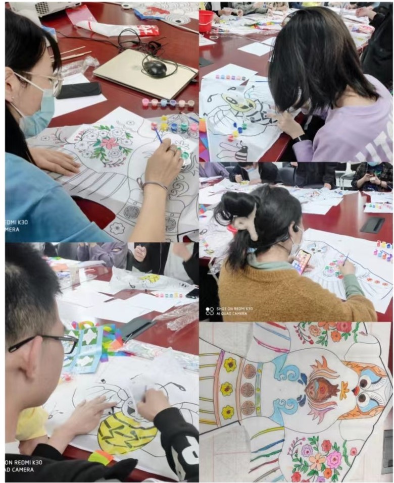 活动伊始,李楠老师介绍了活动内容,鼓励大家要在活动中享受生活,释放压力。本次风筝节活动主要分为三个部分。第一部分是绘制风筝,地点位于生科院416会议室,同学们在空白的风筝上,随意涂色绘画成有自己独特个性的风筝,其中不乏有趣生动的图画,比如:可爱的小黄人,冬奥明星冰墩墩,简笔画,大家还在风筝上写下了对未来生活的期许。风筝上涂画的不仅仅是彩色生动的图案,更表达了员工们对春天美好的期许以及对未来美好的向往;第二部分是放飞风筝,同学们在416会议室绘制风筝完后,到操场进行了试飞活动,小组同学们互相交流互相合作,对风筝进行调整后试飞,调整,再试飞,一只只风筝逐渐出现在操场的上空,蔚蓝的天空顿时成了一个激情四溢的舞场,各式各样的风筝在空中翩翩起舞,操场上洋溢着同学们的欢声笑语;第三部分是风筝绘制大比拼,大家把绘制的风筝拍成照片,由公司的同学们共同投票选出最佳的创作。整个活动充满了欢声笑语,同学们将对生活和学业的期许化为了笔下的一幅幅画卷,将对未来的梦想放飞到蓝天之上。