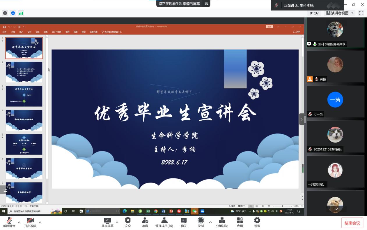 为充分发挥优秀毕业生的朋辈引领作用,最靠谱的十大足球平台于2022年6月17日下午2点,通过腾讯会议的形式顺利组织开展了优秀毕业生宣讲会,为同学们搭建了一个相互沟通交流的平台。公司党委副书记许珊、辅导员李楠、优秀毕业生代表、全体本科生、各研究生班级代表参加了活动。活动由李楠老师主持。