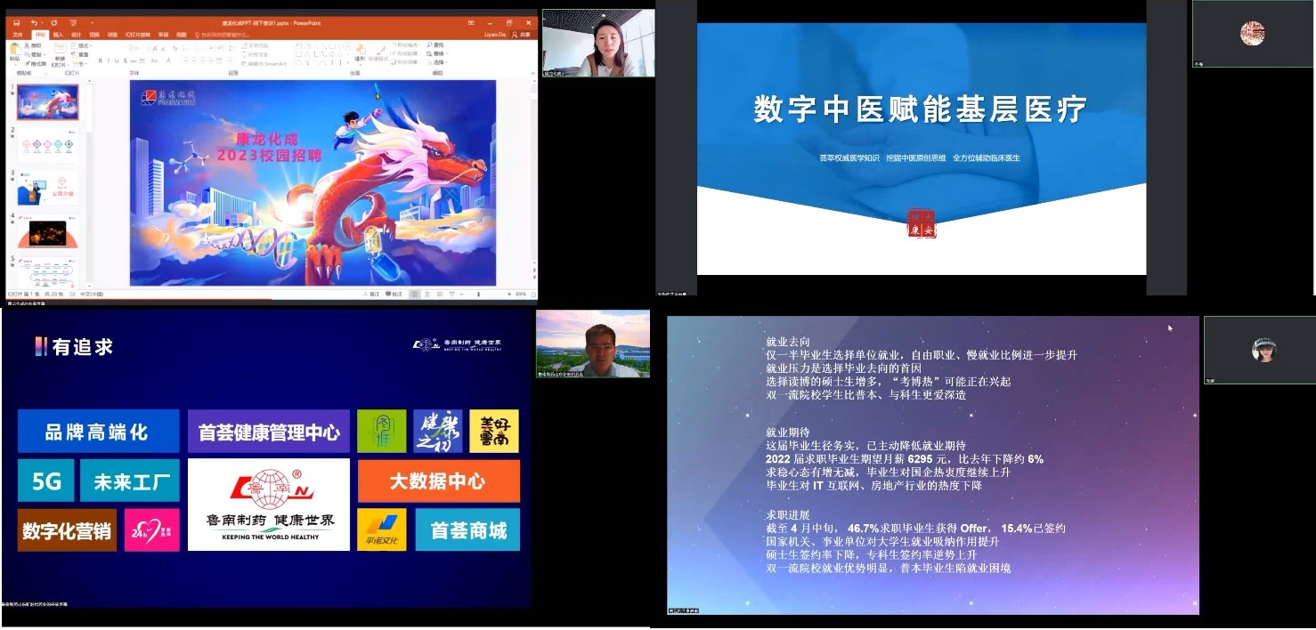 活动面向全校员工开展,采用线上、线下相结合的模式。此次招聘暨宣讲会参与企业6家,涉及医疗机构、生物医药、大健康产业等多个行业。各单位从基本情况、招聘计划、岗位职责、薪资待遇、职业发展等多方面进行了详细宣讲和解读,为同学们进一步认识职业、明确求职意向、精准定位求职目标、实现人职匹配起到了积极推动作用。