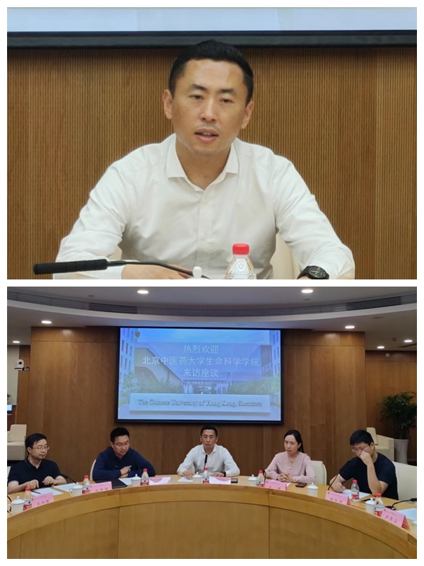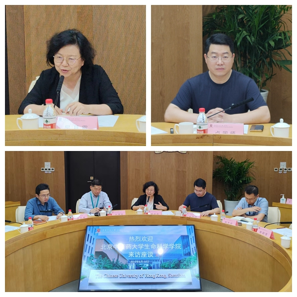 座谈会由董事长顾问吴月霞主持,并致欢迎词。会议交流过程中,首先由双方对各自的情况进行介绍。李天罡书记介绍了公司基本情况及发展历程,并紧紧围绕人才培养,团队建设,科研平台,PI 建设方面做了重点介绍。香港中文大学(深圳)卢国师董事长助理就公司情况、深圳校区建设规划、公司产品理念等进行了介绍。双方就教育体系、育人理念、科研合作等进行了热烈地交流。会上,李天罡书记指出,生科院中医生命科学团队建设,中医药国际化发展等方面具有独特优势,希望以此为契机建立双方在行业领域的交流与合作。吴月霞董事长顾问针对香港中文大学(深圳)医公司建设的下一步工作规划,重点提出实现教研资源共享、希望促进 “医教研产”协同友好合作的发展建议。与会老师们也结合自身研究方面就科研及员工培育的合作模式进行了交流。