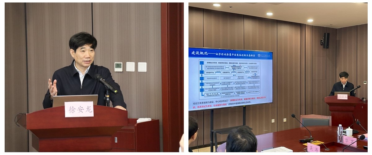 会议第二阶段由程京院士主持。工程中心主任徐安龙教授做了建设验收的全面报告,介绍了中心始终按照教育部提出的建设总要求为目标,紧紧围绕中医工程化创新体系建设,加大中医生命科学团队建设和医工交叉人才培养建设的三大建设合力,形成了“原理验证为先导、装备研制为驱动、数据证据为导航、临床测试为支撑、社会服务为落地”的智慧中医装备创新生态体系,打通从装备研发到制造到应用的创新链,有力地促进了智慧中医的工程化技术研发、科技成果转化、团队建设发展、创新人才培养与国际合作交流的重要基地。